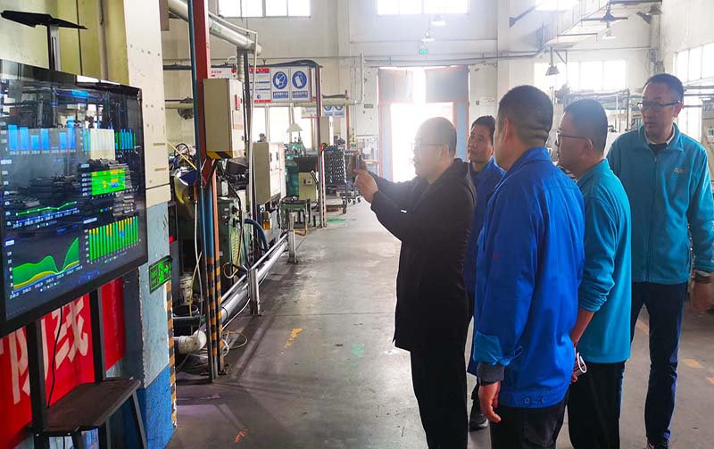 在轴承项目生产现场,姜部长对轴承产品的外观、尺寸、精度等进行了考察。姜部长还深入到轴承产品的加工车间,了解了轴承的加工工艺及相关流程和智能化的产线和物联网设备。同时,姜部长还听取了项目负责人对公司概